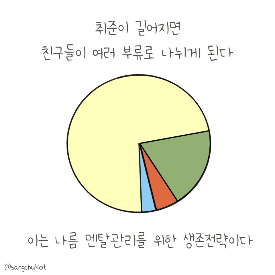 한창 대학생활을 할 땐 모두와 끈끈하게 지내야만 한다고 생각했었다. 하지만다들 각자의 진로를 찾아 떠난 취준 기간은 이 생각을 바꾸는 계기가 되었다.