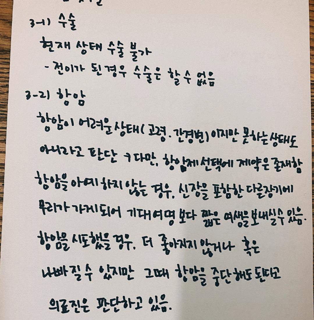 종양내과 선생님과 이야기해봐야 할 것 같다고