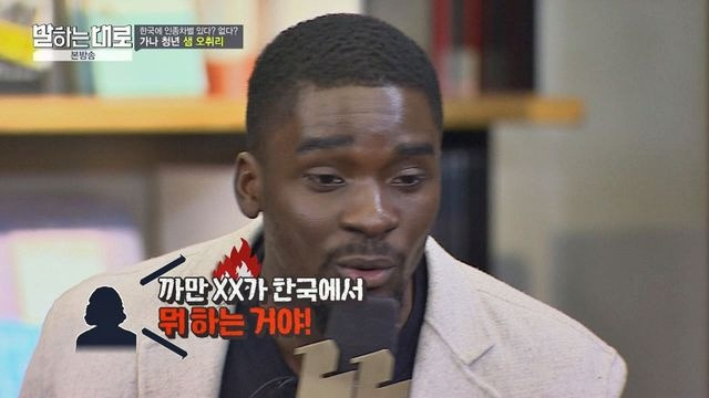 "흑인에 대해 나쁜 감정은 없다. 그렇지만 지하철에서 내 옆자리에 흑인이 앉지 않기를 원한다."