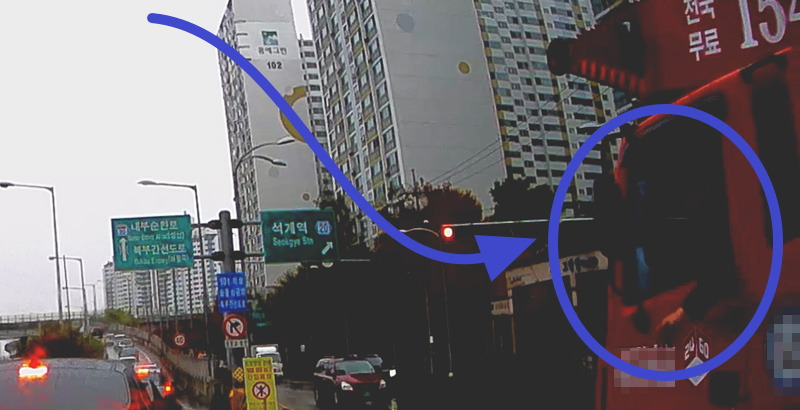 (사진뿐만 아니라 영상을 함께 업로드하면 더 분명하게 상황이 보이겠지만, 앞-뒤 차량 번호판과 앞 유리창에 비친 제 전화번호 때문에 사진만 올립니다. 영상 모자이크를 하지 못해서요ㅠㅠ)
