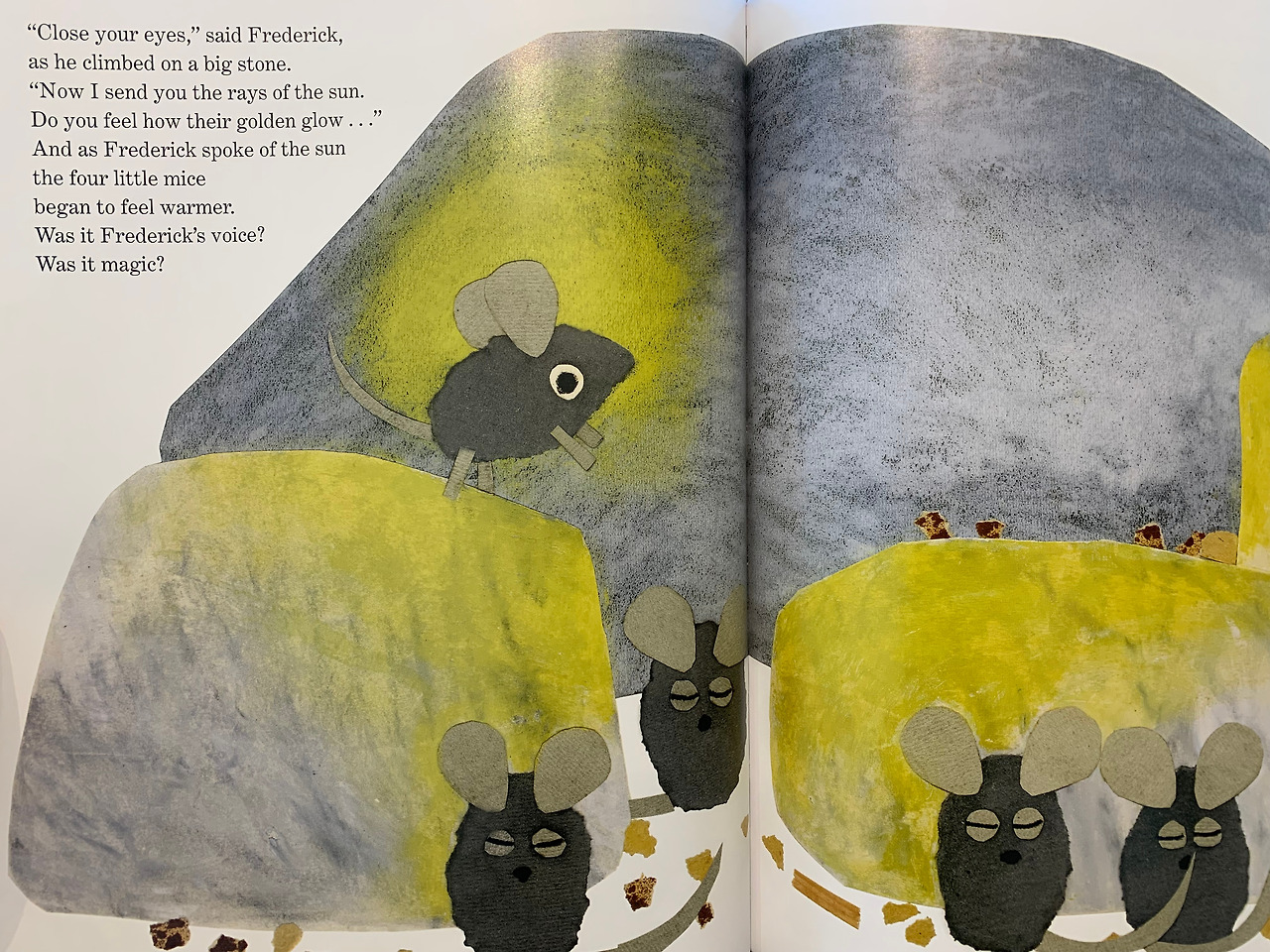 "And as Frederick spoke of the sun the four little mice began to feel warmer."