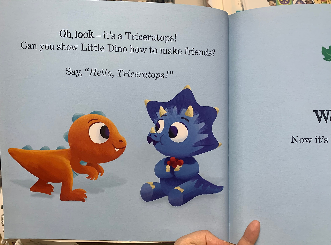 자기가 아는 공룡들이 나오니 척척 이름을 말하는 둘째. "Hello, Triceratops~~", " Hello, Stegosaurus~~" 하며 나를 따라 인사를 나눴다. 옆에서 첫째도 귀로만 듣다 인사는 함께 해주었다. 앙증맞은 공룡들이 친근하고 귀여웠다.