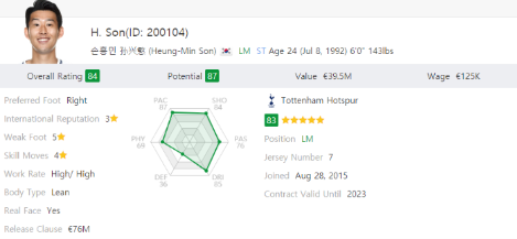 현재 나는 6가지 기준별로 각각 0~5점의 배점을 두어 총점 30점을 만점으로 기업들을 평가한 후 투자결정을 하고 있다. 마치 FIFA 게임에서 선수역량으로 육각형 스탯을 만드는 것처럼 말이다.