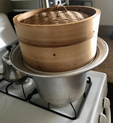 20년도 넘은 찜기용 물솥과 대나무 찜기를 꺼냈다.