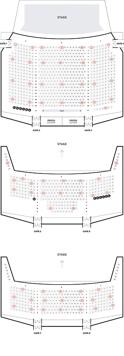 3층 맨 뒤에서 관람하게 되어서 천장이 가까웠는데, 시야가 답답하게 느껴졌습니다. 조명이 위치한 곳에 가깝고 1층 관객석에서 이어진 천장은 그보다는 좀 더 높아서 아마 소리도 막혀서 들렸을 것 같습니다. 하지만 뮤지컬 보는 중에 신경은 전혀 쓰이지 않았습니다. 추가로 3층 맨뒤에서 관람했는데도, 무대를 보는 데 있어서 보이지 않거나, 놓칠 수밖에 없던 부분도 제 기억상으로는 없었습니다.