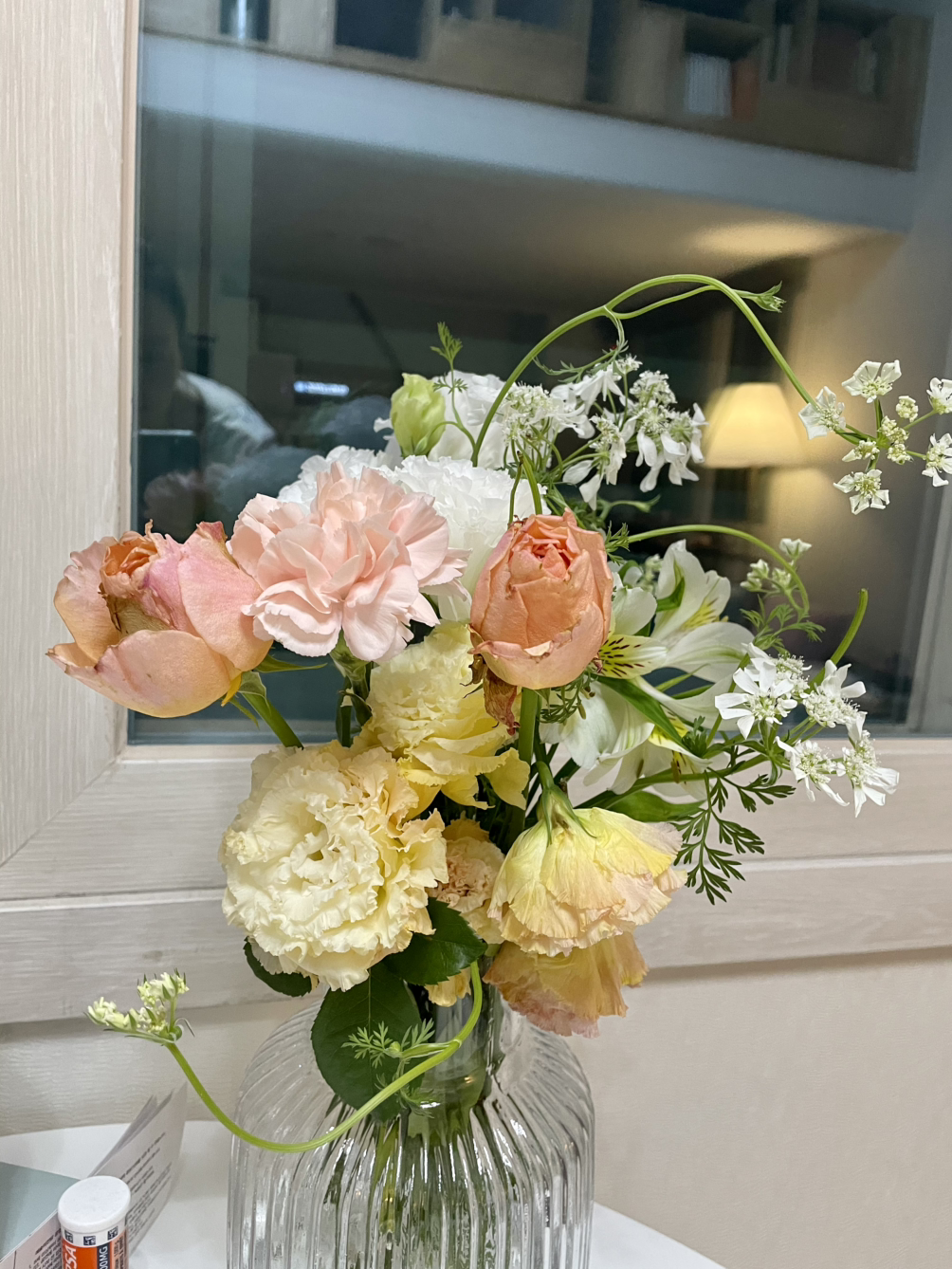 당시는 코로나 기간이라서 밖에 잘 다니지도 못 하고, 집에 있는 시간이 많았던 때였는데 화병에 꽃아둔 예쁜 꽃 한다발이 생활의 큰 활력소였다.