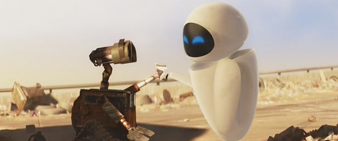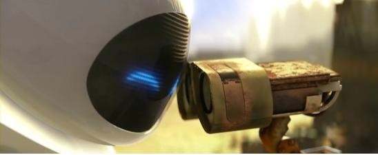 게다가 <월 E>에서 가장 비중 있게 사용되는 의사소통 방법은 '언어'가 아니라 '행동'입니다. 월E와 이브는 언어를 거의 사용하지 않습니다. 심지어 주인공 로봇들의 외형도 사람의 얼굴과는 거리가 멀어 표정으로 감정을 표현하기에 적합하지도 않습니다.