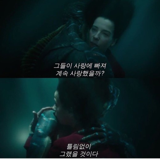 기예모르 델 토로 감독은 크리처 덕후로 유명한 감독인데 (본인만의 크리처 소품 박물관까지 소장한 그는 진성 덕후..) , 그 감독이 마니아층의 심장을 저격하면서도 비 마니아층의 마음까지 저격한 영화가 셰이프 오브 워터. 소재와 별도로 영화 전반의 분위기가 참 동화 같고 서정적이다. 뭐랄까. 차가운데 사랑스러워.. 뭔가 불안한데 몽글 거려.. 부제가 '사랑의 모양'인 것에서 알 수 있듯이 영화를 관통하는 가장 큰 감정은 '사랑'이다. 약간 어둡고 차갑지만, 우리 모두가 아는 바로 그 사랑. 조금은 몽환적이고 오묘한 사랑.