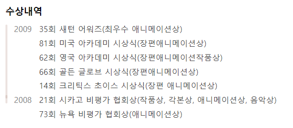 정말 띵오브띵오브띵작. 인생영화 뭐니? 하면 나오는 TOP3가 월터, 인셉션, 그리고 마지막이 바로 월-E 다. 정말 정말 정말 섬세하다. 정말로 섬세한데 영화가 참 쉽다. 내 기준 애니메이션 중에 최고. 일종의 작품같이 느껴질 정도로, 예술성- 있어!, 재미- 있어!, 감동- 있어!, 그런데 뻔함- 없어!, 여운- 있어! 영화. 어떻게 이런 영화를 만들 수 있을까. 진짜 세상에 대단한 사람들이 정말 많다. "웰메이드란 이런 것! 애니메이션이란 이런 것!"이라며 이 영화 제작에 참여한 사람이 떵떵거리며 다녀도 아니꼬움은커녕 예이~~~ 당연합죠~~~ 할 정도의 감동이었다. (비유적 표현입니다)
