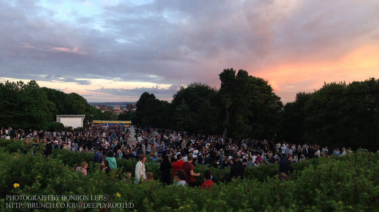 나의 단짝 친구인 조성빈이 노르웨이에서 유학하고 있을 때 2주 동안 가서 지냈던 적이 있다. 방문했던 달이 6월이었는데, 백야 현상으로 자정이 넘어가도 해가 지지 않았다. 덕분에 우린 밤새 놀고 다음날 정오가 넘어서야 일어나는 베짱이의 삶을 보냈더랬다. (집에 커튼이 없어 언제나 안대를 착용하고 자야만 했다. 밤새 해가 지지 않으니까..) 어느 나라던지 수도를 가면 관광객들이며 현지인들이며 인구밀도가 높기 마련이나, 오슬로는 사람이 별로 없었다. 서울의 명동 같은 곳이라며 조성빈이 나를 오슬로 시내 중심가에 데려다 놓았을 때도 어깨빵(?)은커녕 너무나도 한산했다. 그런데 오슬로의 모든 시민들이 다 모였던 것만 같은 곳이 하나 있었으니, 바로 상트한스하우겐파크(St. Hanshaugen Park)의 야외영화관(Utekino)이다.