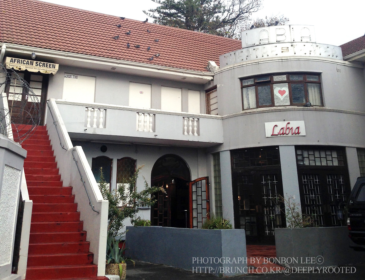 남아프리카공화국에서 가장 오래된 독립영화관인 라비아(Labia Theatre). 1949년부터 그 역사가 지금까지 이어져 오고 있다. 건물의 왼쪽 계단으로 올라가면 국립영화재단의 지원으로 아프리칸 영화만 상영하는 관이 있다. 건물 2층 오른쪽 창에 붙어 있는 하트 표시가 눈에 들어왔다. 어린이 영화관인가 싶어 친구에게 물으니 포르노영화를 상영하던 곳이란다. 와우... (포르노 말고 스타워즈 시리즈만 상영하는 영화관이 있다면 행복할 것 같다. 공간은 밀레니엄 팔콘 컨셉으로 디자인해서..)