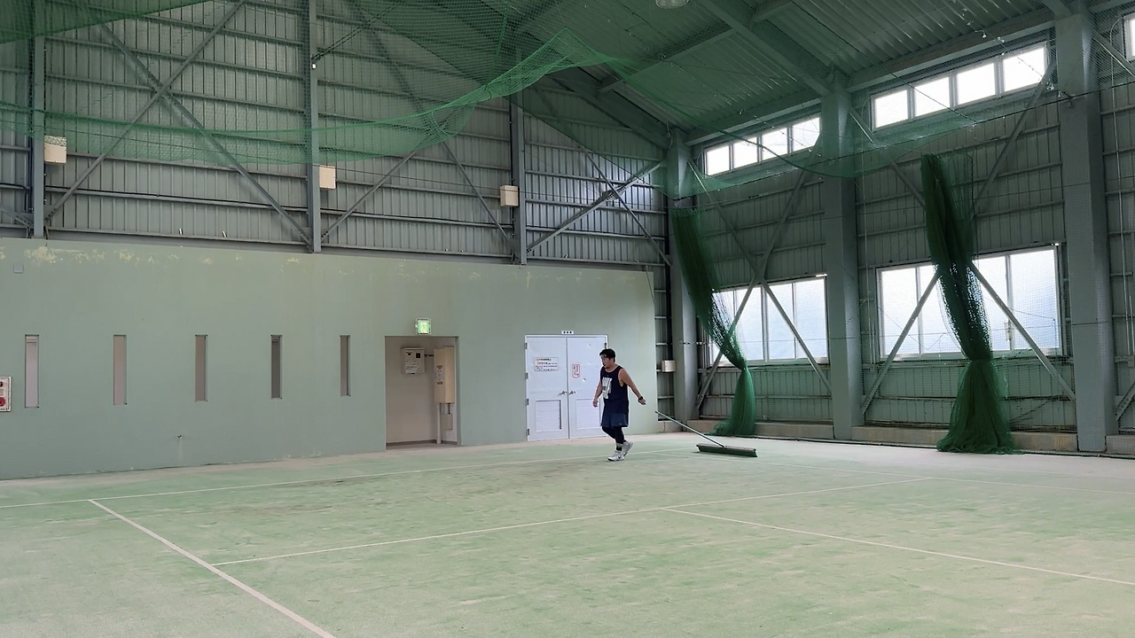 예약을 마친 후 코트로 돌아오니 동호회 분들이 운동을 끝내고 코트를 정리하고 계셨다. 본인들이 오늘 코트 마지막 사용자인 줄 알고 다 정리하려 했는데, 우리가 왔으니 브러쉬만 하겠다 하셨다. 그리고 우리에게 코트를 다 사용한 후 어떻게 정리하면 되는지 친절하게 알려주셨다. 브러쉬는 기본이고, 네트까지 고이 접어서 창고에 보관을 해야 했다. 시모지 동네뿐만 아니라 미야코 섬에 몇 없는 실내 체육관인지라 테니스 말고도 다른 목적으로도 공간을 이용하는 것 같았다. 그뿐만 아니라 창문도 모두 다 닫아야 했으며, 코트 문도 잠근 후 열쇠를 사무실에 반납해야 모든 정리가 끝이라고 하셨다. 뭔가 막중한 임무와 책임이 주어진 것 같아 약간 비장한 마음까지 들었다..