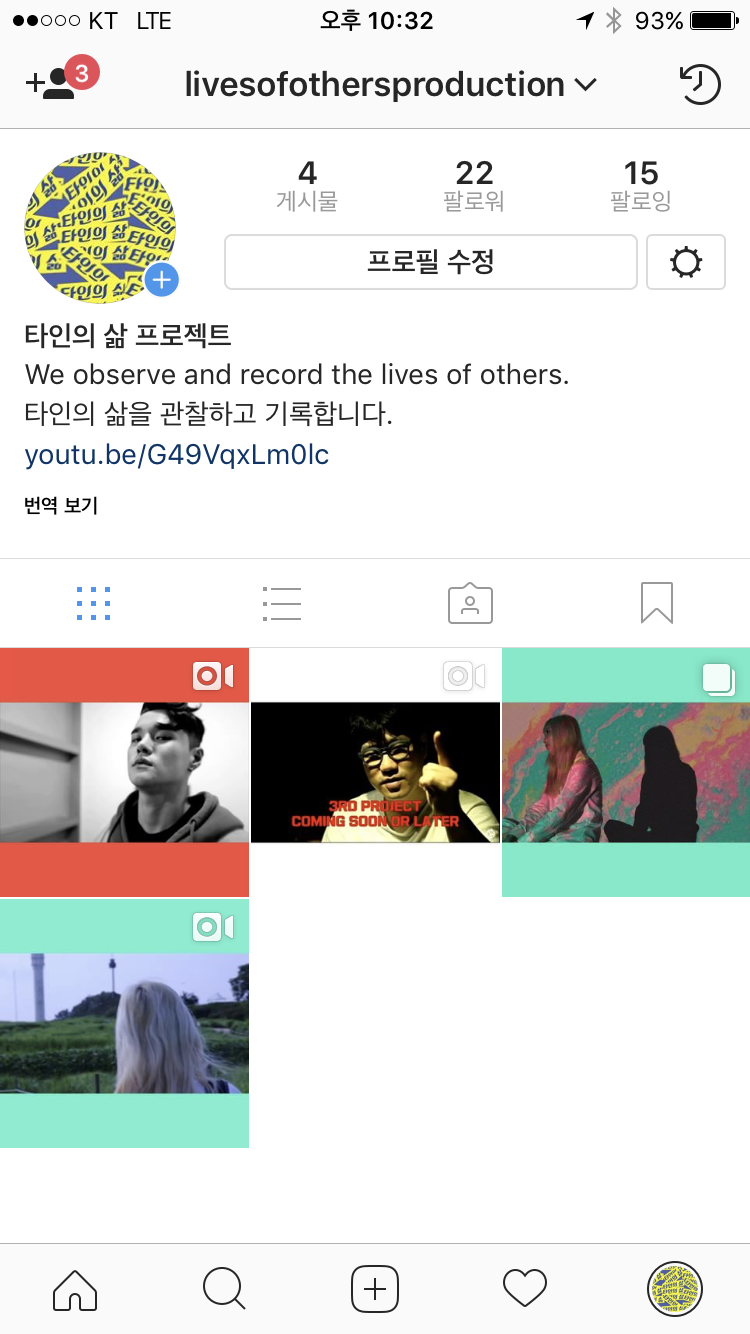 우리가 촬영을 위해 시공간을 나눌 때, 그녀가 가장 많이 한 말은 모든 것이 의미가 없다는 것이었다. 모든 것이 의미가 없고 헛되며 (권지용님이 말씀하셨듯) 영원한 건 절대 없고 결국에 넌 변할 것이기 때문에, 당장 내가 잘할 수 있고 좋아하는 것을 최선을 다해 열심히 잘 해내는 수밖에 없다고 그렇게 말했었다. 그녀의 발언으로부터 내가 타인의 삶을 기록하는 이유를 대체할 수 있다고 생각했다. 헛된 시공간을 누군가와 함께 하고 의미 없는 대화를 나누었다는 것을 기록해두는 것이 당장 내가 할 수 있고 좋아하는 일이다. 그 과정에서 나는 다른 사람이 상상도 할 수 없는 많은 것을 얻는다. 그것이 희열이든, 상념이든, 피로든, 조급함이든, 불안이든간에. 이 모든 것들은 나를 성장시킨다. 그 결과물은 조만간 유튜브에 업로드될 것이고, 과정의 조각들이 인스타그램(@livesofothersproduction)에 전시된다.