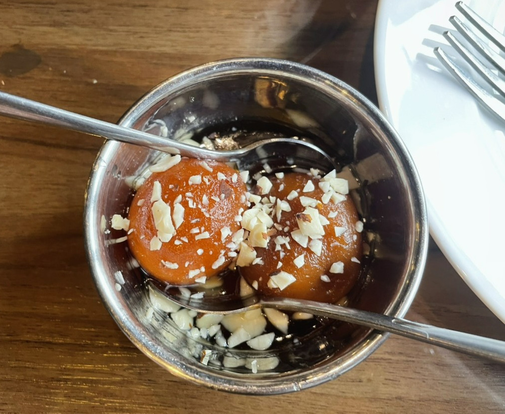 부드러움 속 약간의 톡 쏘는 매운맛과 쫄깃한 닭고기, 달지 않고 상큼한 맛이 강한 신선한 요거트 음료 라씨. 환상의 조합이었다. 커리를 다 먹고 나니, 조그맣고 어두운 갈색을 한 동그란 디저트가 보였다. 딱히 큰 특징도 없고 그다지 볼품없는 모양이었다. 아, 그냥 큰 의미 없는 주전부리인가 보다. 별 기대 없이 첫 입을 베어 물었을 때, 그 맛을 아직도 잊지 못한다. 부드럽고 촉촉한 식감에, 달콤한 꿀이 조금씩 새어 나오더니 마지막에는 고소한 우유와 치즈 그 중간의 향이 코끝을 스친다. 완벽한 마무리였다.