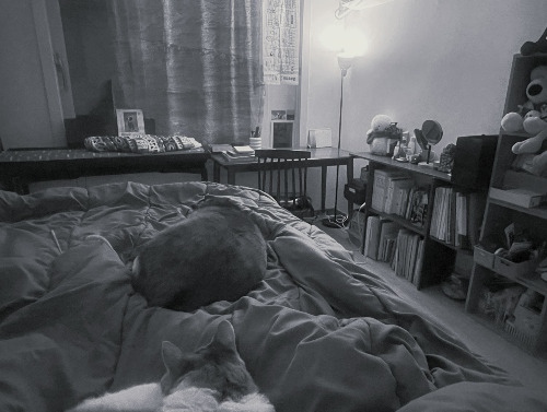 아, 특별한 일이 하나 더 있다. 방의 구조를 조금 바꿔보았다. 원래 침대가 창문 바로 앞에 붙어있었는데, 창문 맞은편 벽으로 옮겨간 것이다. 그리고 작년 3월, 일본 여행을 갔던 때에 소중한 사람이 내게 선물해 준 귀여운 고양이 원단을 커튼 옆에 달았다. 침대의 위치가 바뀌니 온 방 안이 한눈에 들어온다. 어찌 됐건 침대에 누워 창밖을 바라볼 수 있는 시선의 위치는 같지만, 더 넓어졌다. 나의 방공호를 바라볼 수 있는 시선의 넓이는 말이다.