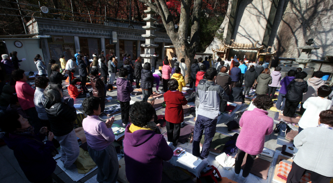 수능 합격을 위해 기도하는 수험생 학부모들의 모습 @이데일리