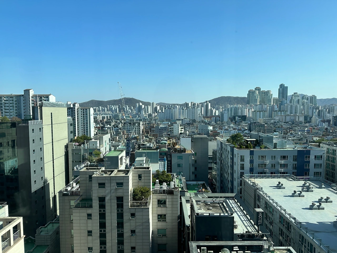 화려한 시티뷰인 줄만 알았는데 자세히 보니 저 멀리 대모산과 구룡산이 꽤나 잘 보이는 마운틴뷰였다.