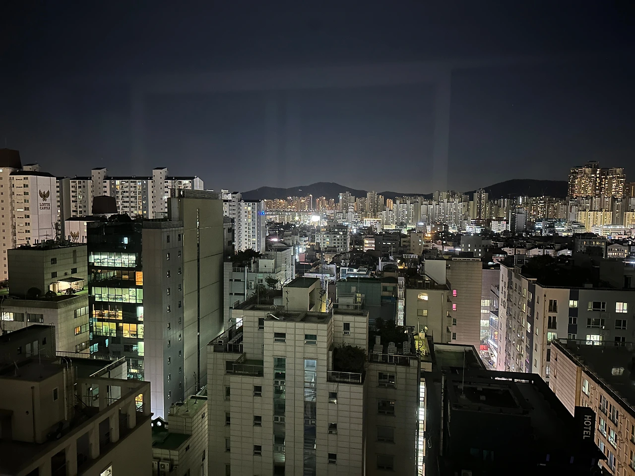 밤에는 반짝반짝 전형적인 시티뷰(뒤에 여전히 든든하게 서있는 대모구룡산). 술을 조금만 더 좋아했어도 매일밤 고주망태가 됐을 각이다.
