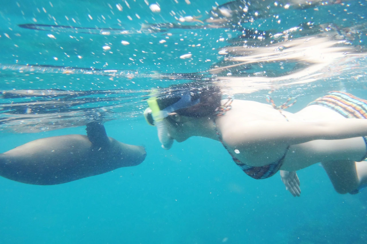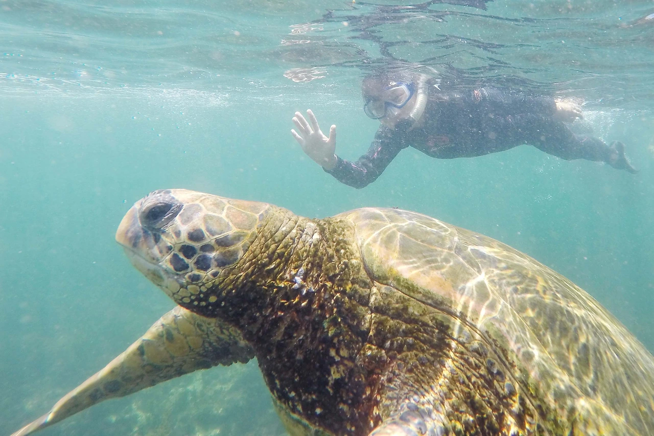 부지런하게 자전거를 빌려 타고 나갔다가 아무리 달려도 그늘 한 점이 없어서 후회하는 하루를 보내기도 하고, 어떤 날은 스노클링 투어를 나가 120살 된 거북이 할아버지를 뵙는 영광을 누리기도 하고, 자고 있는 화이트팁 상어를 보고 비명을 지르기도 하고, 뜬금없이 나타난 열대 펭귄이 바위 위에서 나를 구경하러 뿅뿅뿅 걸어오는 말도 안 되는 일을 겪기도 했다.