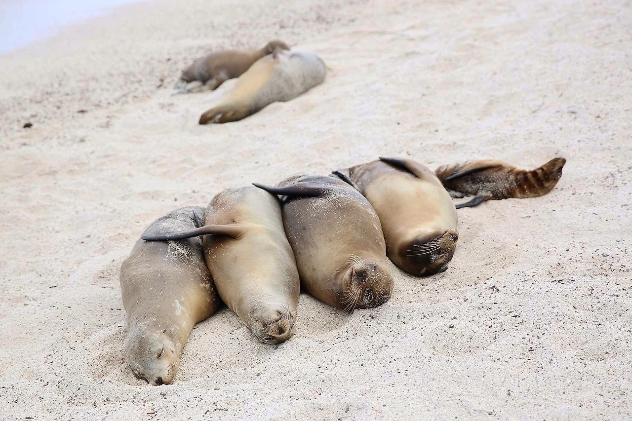 갈라파고스를 다녀온 사람들의 SNS엔 누구나 할 것 없이 바다사자와 이구아나 혹은 파란 발 부비새 (실제로 보면 정말 신기 하긴 하다) 사진이 넘쳐나는데, 실제 가 보니 동물들 보다는 바다가 정말 아름 다웠다. 칸쿤으로 대표되는 카리브해나, 몰디브에서 만난 인도양과는 또 다른 맑은 바다. 그 해변에 수 만 마리의 이구아나들은 징그럽기보다 경이로운 풍경이었고, 동네 입구에 널브러져 자고 있는 바다사자는 생각보다 크고, 냄새가 고약하고, 성격도 포악해서 사진을 찍는 건 꽤나 심장이 쫄깃해지는 일이라는 걸 알게 되었다. 해 질 녘 수백 마리가 해변에서 컹컹 - 울 때면 정말 뛰쳐 오지나 않을까 무서웠다. 어떤 때는 길목을 막고 지나가지 못하게 공격하기도 해서 한참을 길 끝에 서성이기도 했다. 정말 동네 깡패가 따로 없었다.