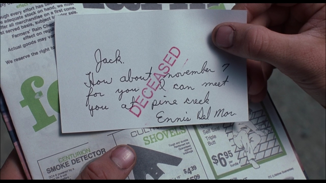 어느 날, 이니스가 잭에게 보낸 엽서가 되돌아오고 거기엔 '사망'이라는 선명한 잉크 자국이 찍혀 있다. 게이로 들켜서 처절하게 폭행당해 죽은 잭.