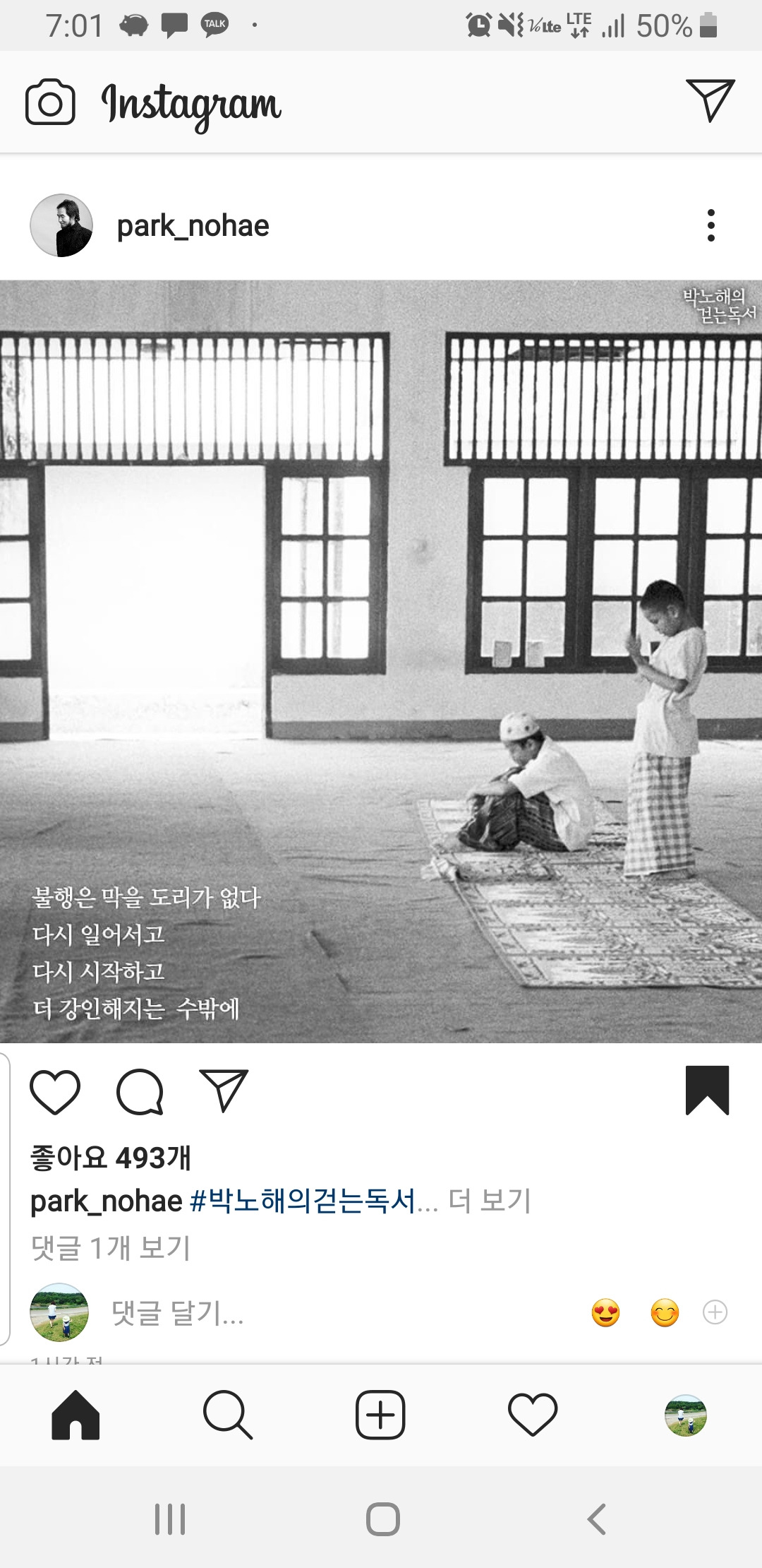 박노해 시인의 오늘의 인스타그램 시를 보면서