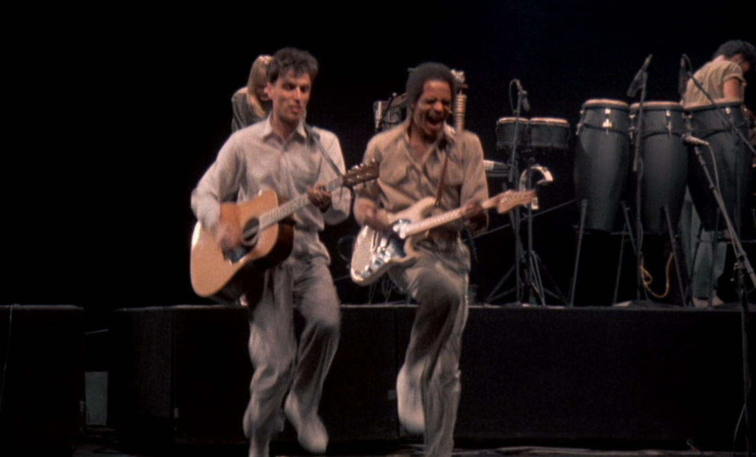 <스탑 메이킹 센스>라는 영화의 본질은 존재 자체가 무대이고, 그 무대가 곧 하나의 완전한 서사 같다. 단순한 콘서트 실황이 아니다. 토킹헤즈의 음악을 넘어, 인간이 발산하고 같이 공명하는 에너지 자체가 서사이다.