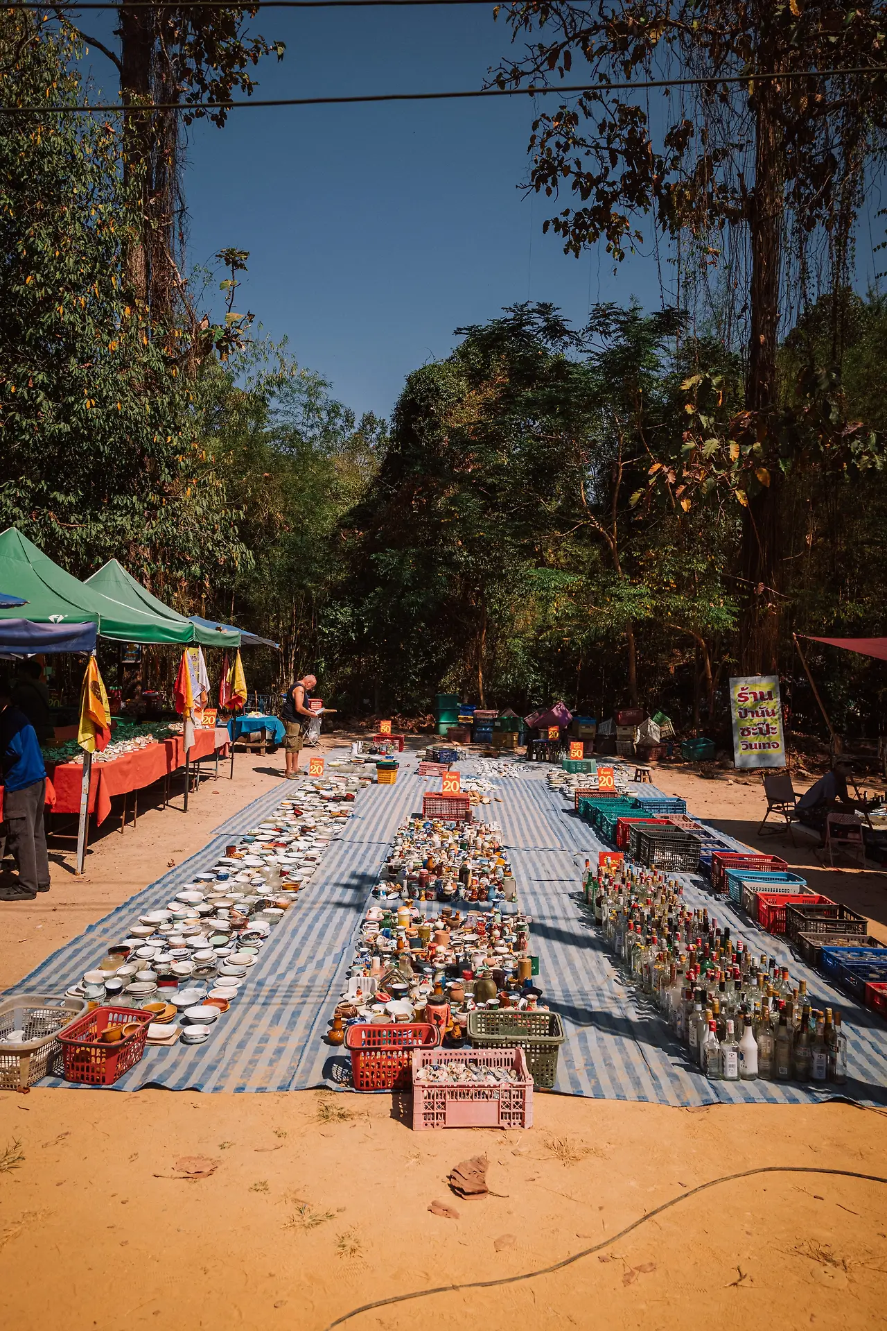 그 와중에 상술은 또 있다. 벼룩시장이라고 다 싸지는 않다. 물건마다 대충 적어놓은 가격표를 보면 의외로 단단하다. 동묘에서는 “얼마에 줘요” 한마디에 반값까지 내려가는 흥정의 묘미가 있었는데, 여기는 크게 흥정이나 디스카운트가 먹히지 않는 것 같다. 가격을 물으면 태연하게 숫자를 말하고, 깎아달라고 하면 미소만 짓는다. 그 미소가 “안 돼”인지 “알아서 해”인지 모호한 채로, 결국 그 가격에 사게 되는 것이다. 물건에 대한 자부심인지, 태국식 여유인지. 어쨌든 억지로 밀어붙이기엔 이 느긋한 공기가 허락하질 않는다.
