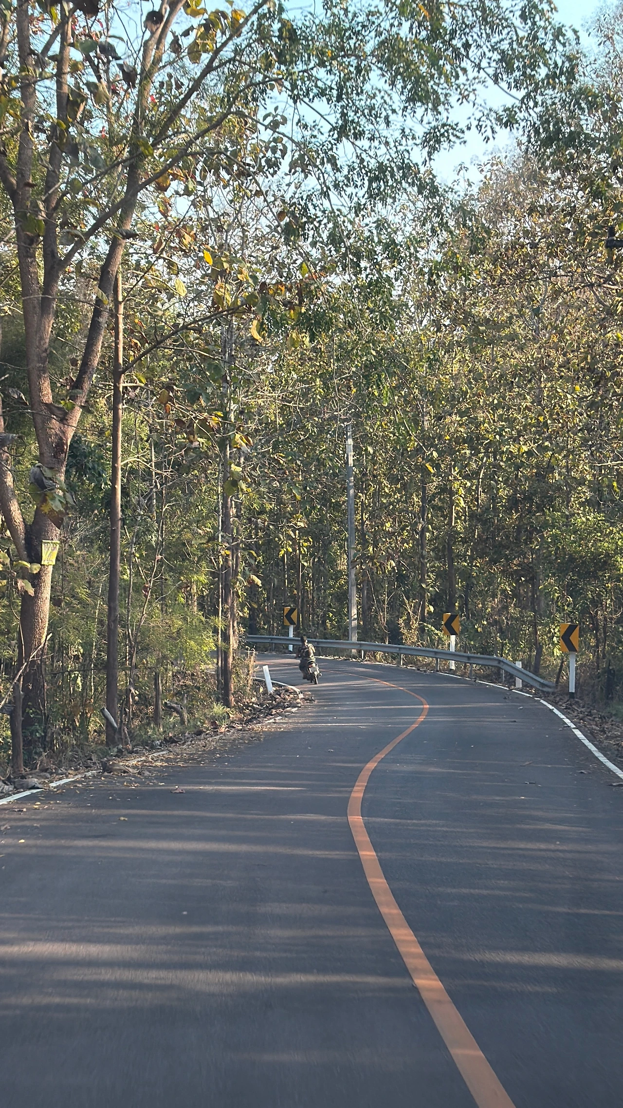 차에홈 마을을 지나 사원이 있는 산 방향으로 접어들면, 잘 포장된 산길이 숲 사이로 이어진다. 오토바이 한 대가 앞서거니 뒤서거니 하며 같은 방향으로 달린다. 건기의 낙엽이 수북한 숲 사이로 굽이치는 이 도로는 그 자체로 드라이브 코스다.