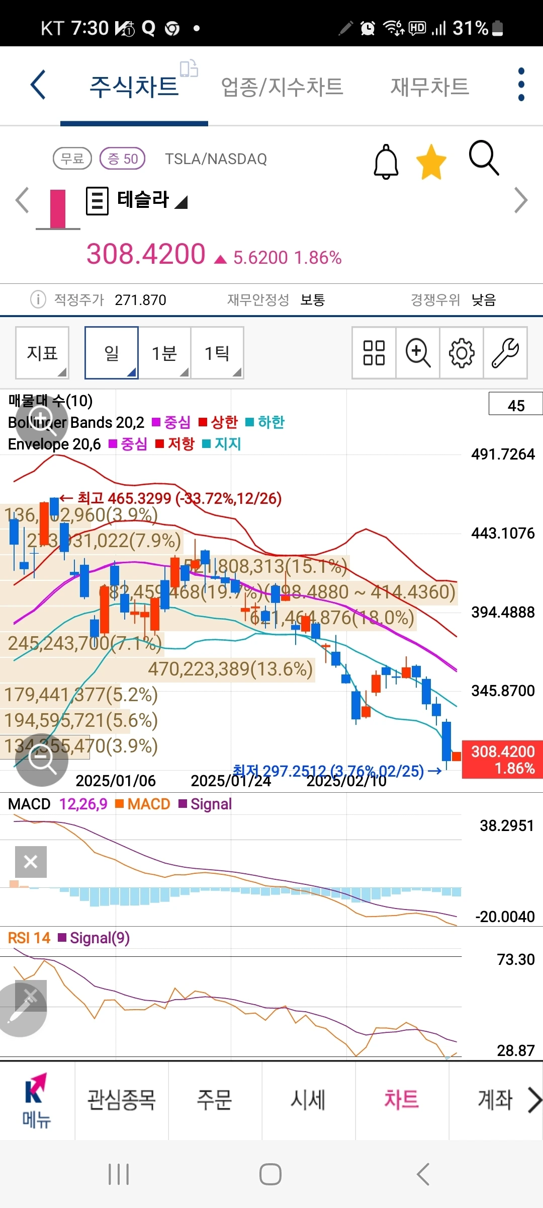 학창 시절 나는 수학을 정말 싫어하고 못했다. 그래도 해외 주식을 한다. 복잡한 건 생각하지 않는다. 그냥 올라갈 때까지 기다린다. 코로나 시기에 주식을 시작한 나는 우량주에 투자했으면 하루저녁에 마이너스 2,000이 되어도 멘털이 흔들리지 않는다. 올라갈 때까지 무조건 기다린다. 주식은 변동성이 심하다. 테슬라는 더 변동성이 심하다. 최소한 3개월 안에는 반전이 있을 가능성이 높다. 주식고수들이 보면 어쩜 코끼리 다리를 긁으면서 그것이 코끼리의 전부라고 알고 있다고 생각할 수도 있지만 지금까지 나름 괜찮은 수익률이었다. 오늘 청약통장을 해지했더니 1,000만 원 정도의 여윳돈이 생겼다. 이것으로 어제 많이 떨어진 테슬라를 살까? 아님 빚을 갚을까? 고민이 된다.