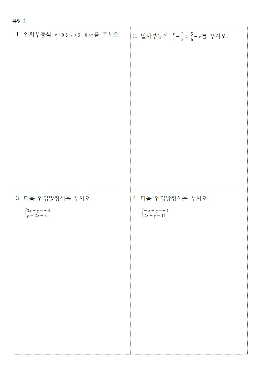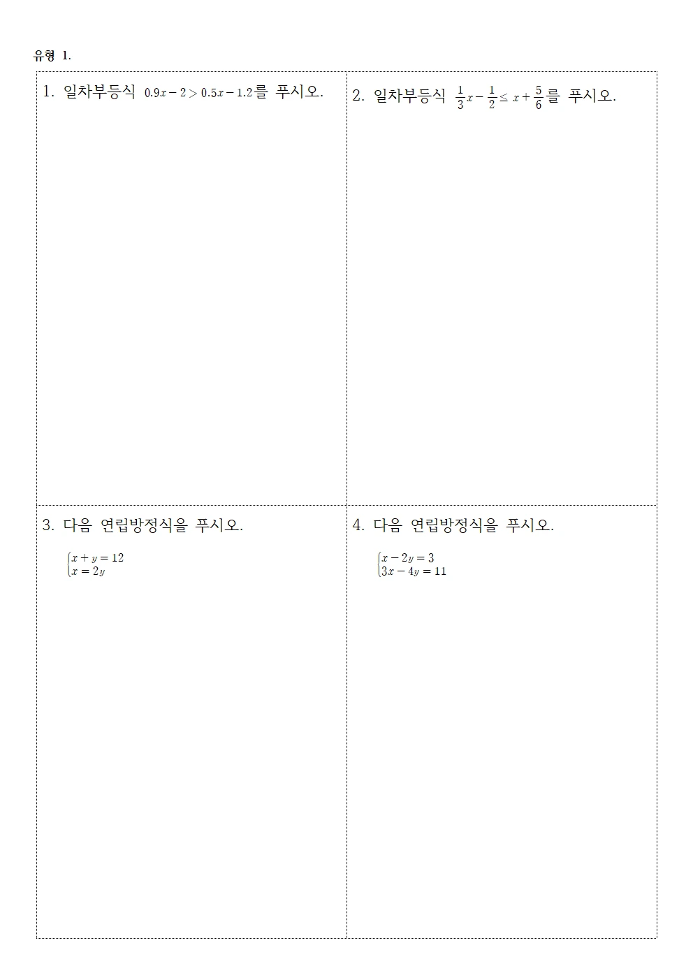 (사례 1) 수학 : 교과서 ‘부등식과 연립방정식’ 범위 내에 있는 문제 중 7문제 쪽지시험