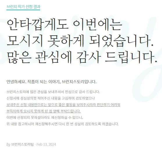 브런치 작가 응모에 벌써 두번째 탈락이다.