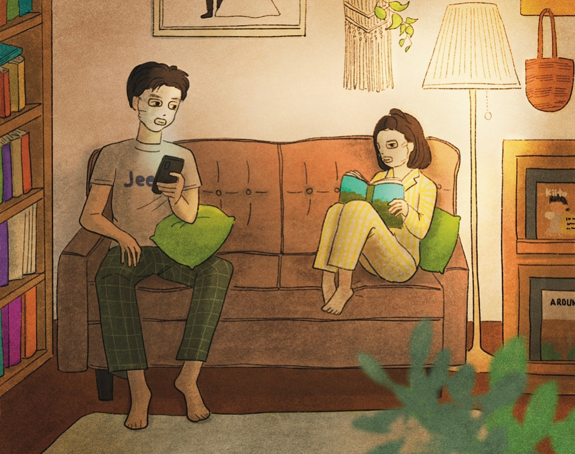 아이를 재우고 갖는 우리의 시간은 여유가 있어서 좋다. 남편은 주로 축구를 보거나 핸드폰으로 기사를 본다. 나는 주로 책을 읽거나 그림을 그린다. 옆에 앉아 각자의 시간을 보내다가도 재미있는 이야기가 생각나면 잠시 대화를 하다가 다시 자기의 일에 집중한다.