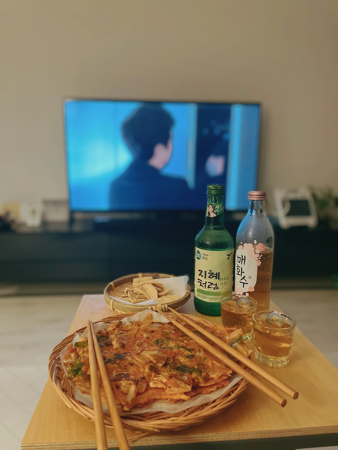 <나의 아저씨>를 보며 매화수 한잔에 김치전 한입.