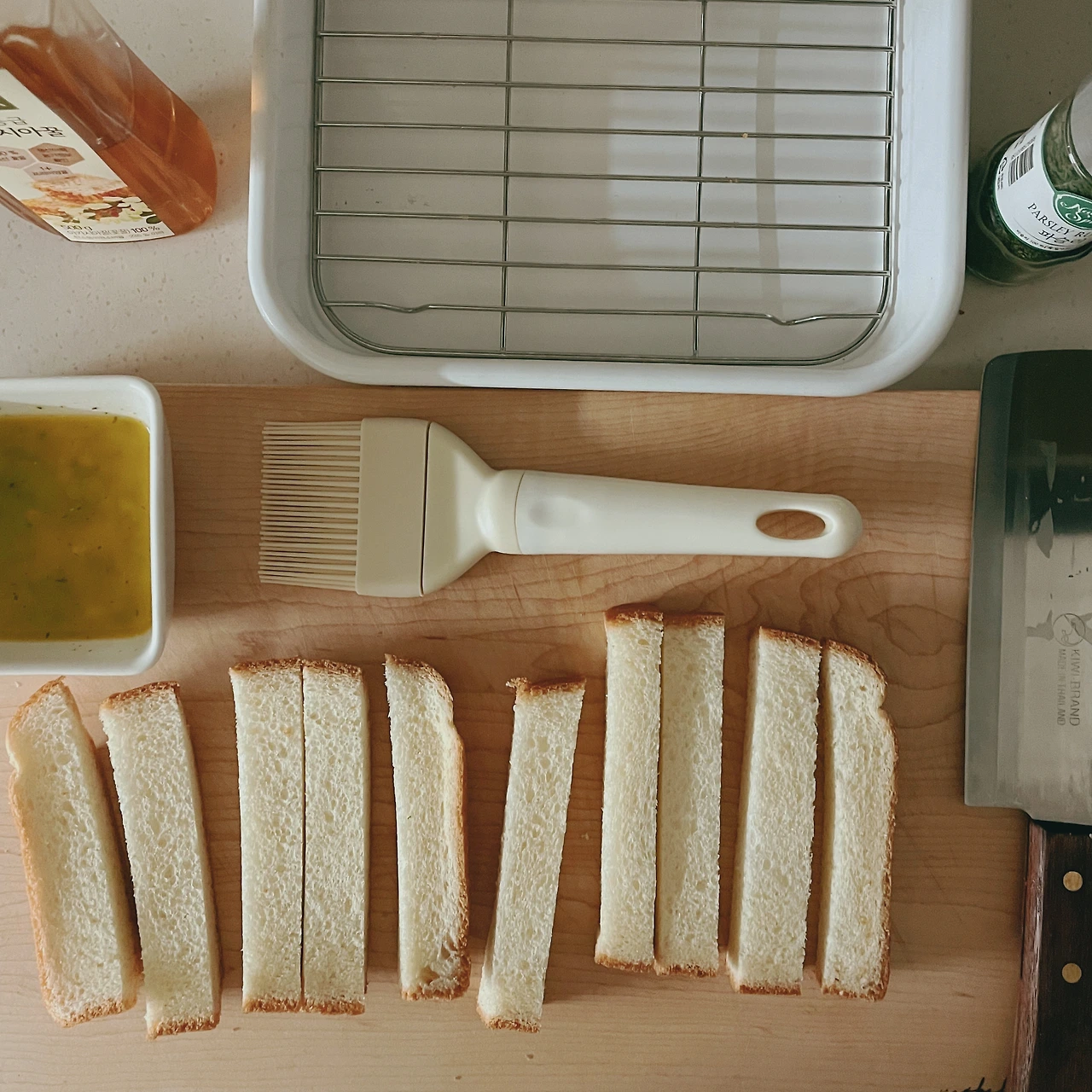 샌드위치나 토스트 만들어 먹는 걸 좋아해서 식빵은 항상 사 두는 편이다. 애매한 숫자로 식빵이 남을 때는 간식으로 먹기 좋은 버터 갈릭 러스크를 만든다.