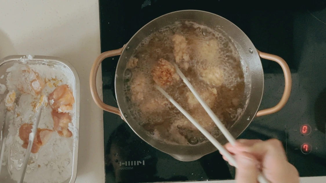 그리고 한번 더 바삭하게 튀겨 준다. 타닥타닥 튀기는 소리가 입맛을 더 돋운다.