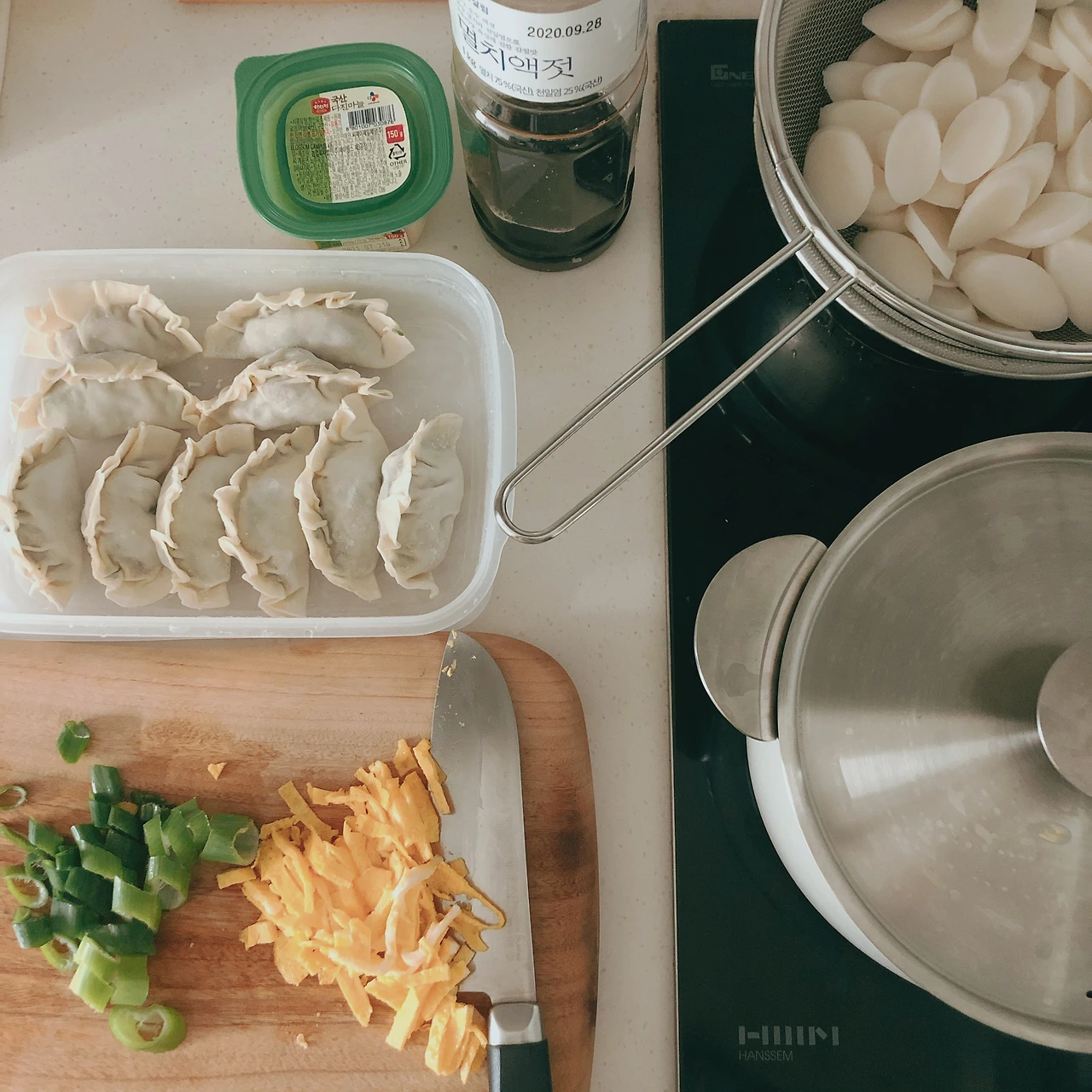 이런 날씨일수록 따끈한 국물요리가 간절하다. 지난번에 만들어 냉동실에 넣어둔 만두를 꺼내고, 떡은 깨끗이 씻어서 물기를 빼 둔다.