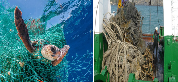 [그림 7] 바닷속에 방치된 폐어구에 생물이 걸려 죽는 ‘유령어업(Ghost Fishing)’(Nature Picture Library)[20]