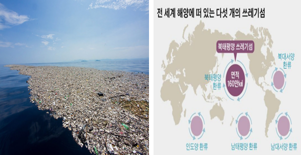 [그림 2] 전 세계 해양에 떠 있는 다섯 개의 쓰레기섬(중앙일보)[8]