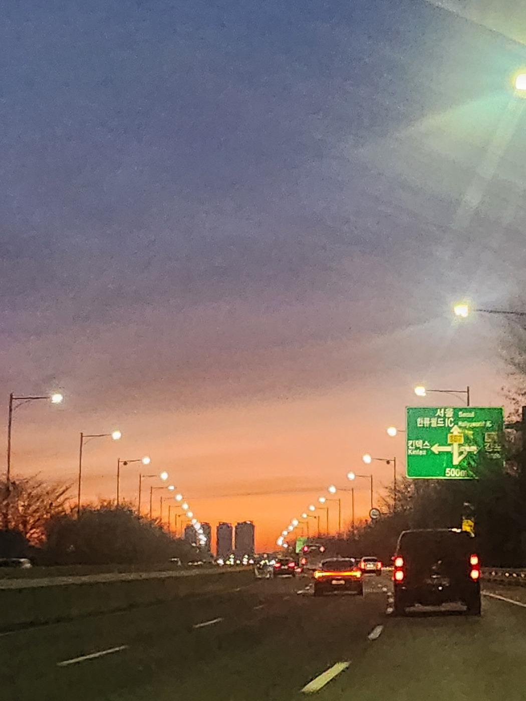 여의도로 향하는 강변북로 위, 저 멀리서 서서히 동이 터오기 시작했다.