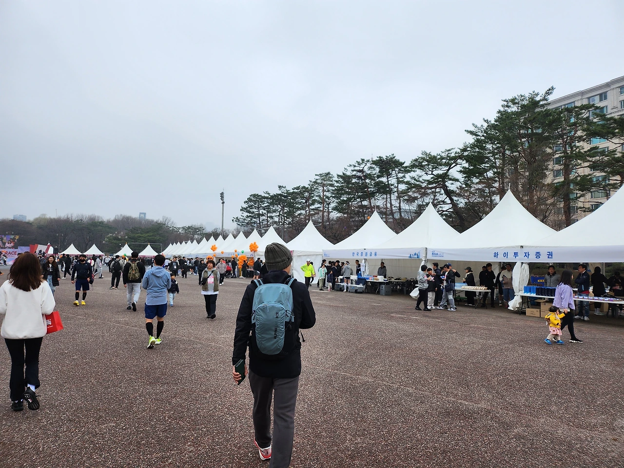 아침부터 여의도 공원에는 마라톤 대회에 참여하기 위한 인파로 북적북적했다.
