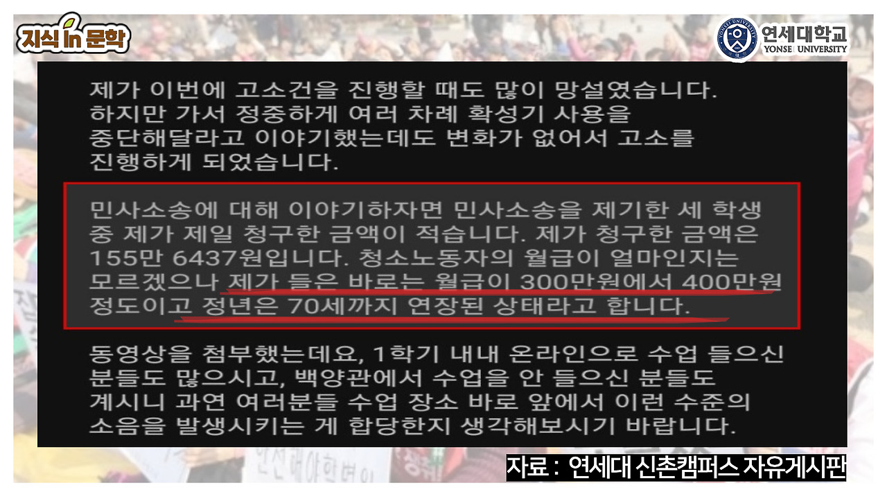 안녕하세요 대미안작가 입니다. 2024년 새해 들어 <지식in문학> 유튜브를 새로 시작했습니다. 이번에는 대학교 노동자들의 생존권을 위협하는 구조를 주제로 준비했습니다. 감사합니다. 유튜브 구독도 감사합니다^^