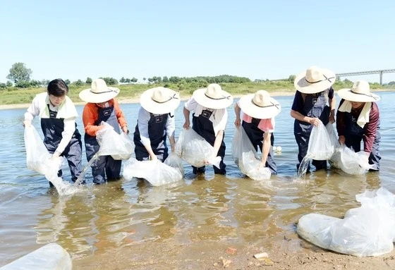 산기슭의 빼어난 자태와 너울져 흐르는 강물이 넘실거리는 이곳에서 매년 황복이 방류됩니다. 임진강 수산자원을 살리고 어민들의 소득을 늘리기 위해 지역 특산물인 황복을 매년 방류하는 겁니다. 지난 1997년부터 꾸준히 이어져 내려왔는데, 이번에만 건강한 어린 황복 17여만 마리가 방류됐습니다. 이렇게 자연의 품으로 돌아간 황복들은 황해로 빠져나가 3년에서 5년 동안의 시간을 보내고 다 자란 성어가 되어 이곳 임진강으로 되돌아옵니다. 특히 황복은 바다에서 잡히는 다른 복들과 달리 강에서 잡히는 유일한 민물 복어입니다.