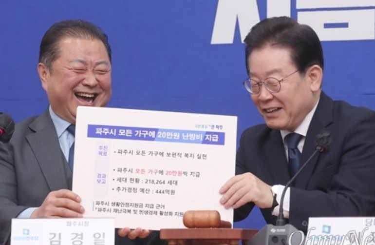 파주시에서 통 큰 결단을 내렸습니다. 파주시는 모든 가구에 20만 원씩 난방비를 지급하는 방안을 발표했습니다. 이르면 2월 말부터 파주시에 주소를 둔 모든 가구에 20만 원씩 재난지원금이 지급될 방침입니다. 442억 원 상당의 추가경정예산을 시의회에서 편성하고 있는데, 전국 지자체에서 처음이었습니다. 파급효과도 상당했습니다. 지상파 방송을 비롯한 모든 언론 매체에서 파주시 우수 사례가 소개됐고, 이재명 더불어민주당 대표의 부름을 받아 파주시장이 국회 최고위원 회의에도 참석했습니다. 김경일 시장은 국회에서 우수사례를 설명했고 관련 사안들도 다른 지자체로 퍼져나가고 있습니다.
