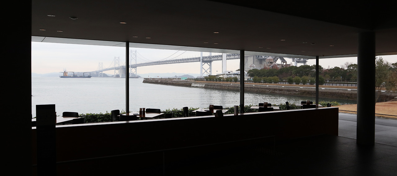 히가시야마 가이이 세토우치 미술관Higashiyama Kaii Setouchi Art Museum이 위치한 가가와현 사카이데시의 명물 중 하나는 세토내해의 남북을 가로지르는 세토대교Seto Ohashi Bridge입니다. 미술관의 관람동선 끝에 위치한 카페로 들어서면 이 교량의 장관을 마주치게 됩니다.