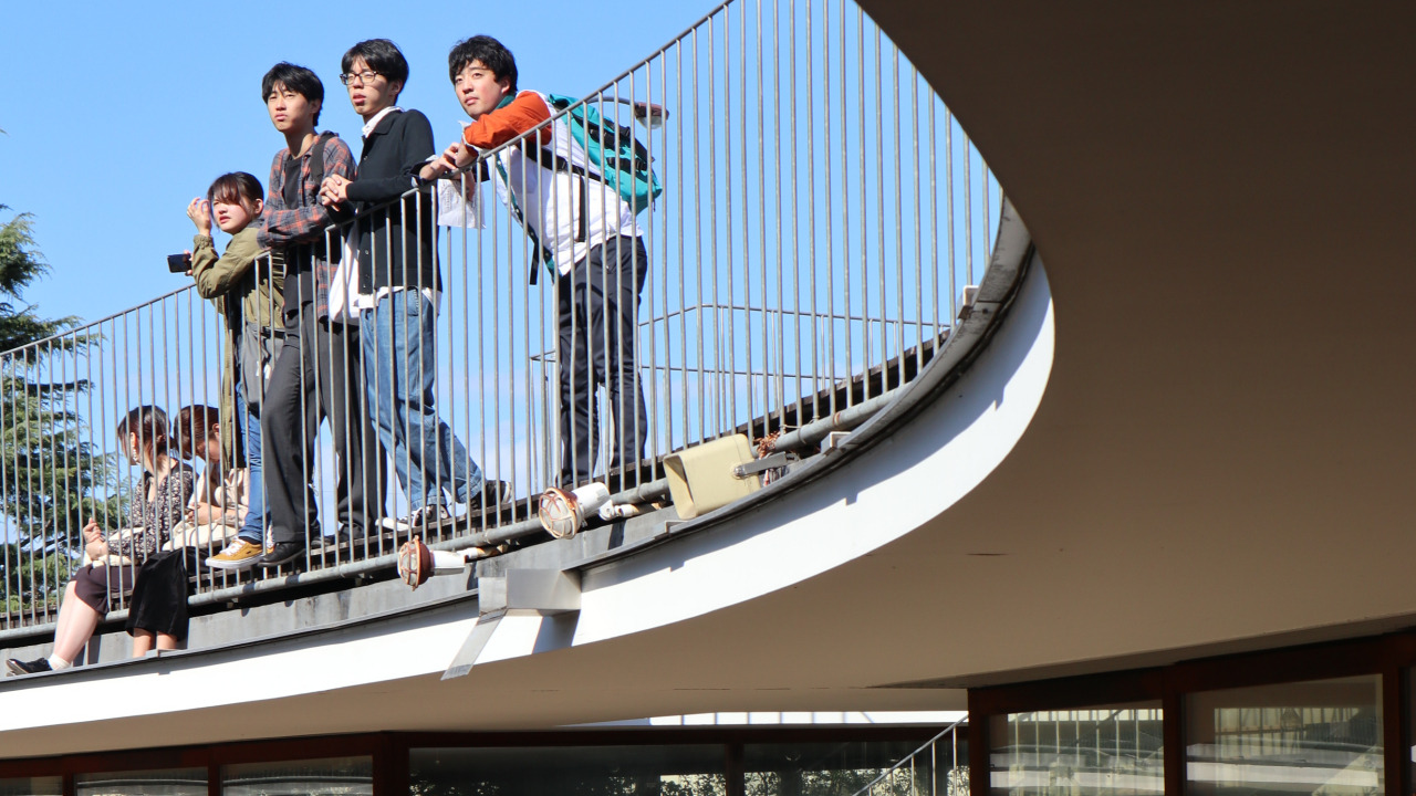 지붕에 설치된 난간은 아이들의 무릎 간격 기준으로 계획되었습니다. 운동회가 열릴 때면 아이들은 모두 마당을 향해 둘러앉습니다. 무릎을 바깥으로 내놓고 난간에 바짝 붙어 앉으면 아래가 잘 내려다보입니다. 지붕은 아이들의 놀이 공간이자 편하게 다가갈 수 있는 관람 스탠드가 됩니다.