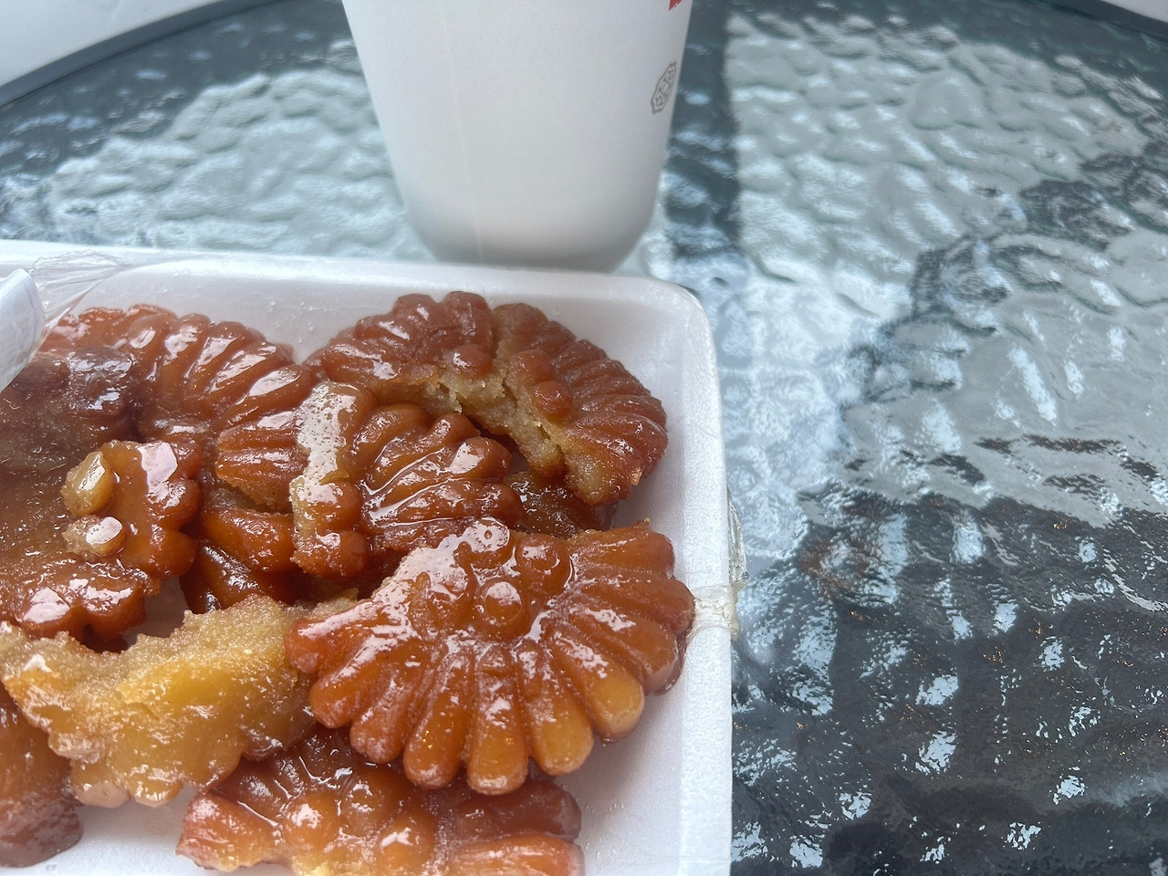 가게의 이해 못 할 운영정책에 맘이 상해, 내심 ‘거봐, 약과가 거기서 거기지!’ 같은 멘트를 당장 꺼내들 준비를 했었습니다. 한식대첩 심사위원들처럼 깐깐하게 식감과 단맛의 세기 등을 분석하려고 벼르던 찰나였습니다. 근데 이 맛은 우리의 KO패. 완패. 너무 맛있었습니다. 필시 이 한 끗 다른 약과를 만들어내는 데에 반죽과 집청의 재료 혼합비율, 튀김의 시간, 집청을 재울 때의 온도와 습도 등 엄청난 비법이 있을 것 같습니다. 그게 멀리까지 바로 사람들을 불러 모으는 힘이며, 손님이 불편한 정책임에도 불구하고 지갑을 열게 하는 원동력일 것입니다.