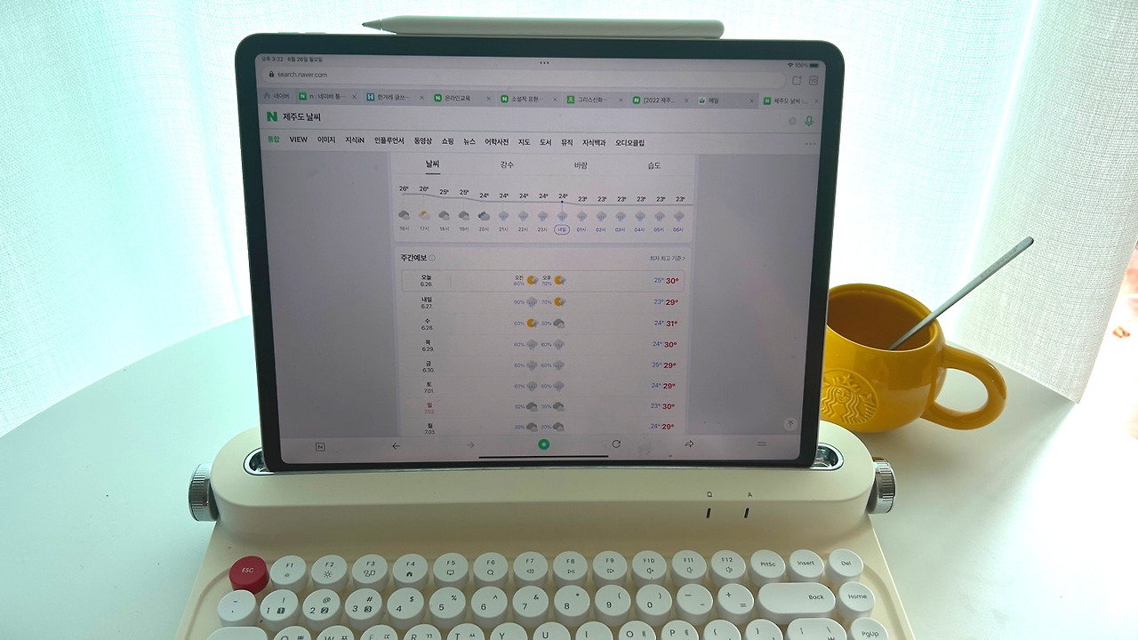 베란다를 열어보니 잠깐 고개를 내민 땡볕에 주차장 바닥 물기가 말라있습니다. 날씨예보를 확인해 보니 오늘 밤 9시경 까진 잠깐 맑을 거라고 합니다. 이른바 ‘타임찬스!’ 본격적으로 이어지는 비 예보 이전에 잠깐의 소강상태를 맞이한 겁니다. 이때다, 싶었습니다. 제게 주어진 건 단 몇 시간! 서둘러 마지막 벼락치기를 부랴부랴 준비해 봅니다.