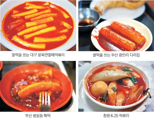 밀떡은 귀한 쌀을 쓰지 못하던 시절에 대용품으로 생겨났다. 막걸리도 쌀로는 빚지 못했다. 떡볶이집에선 저마다 밀가루 가래떡을 뽑아 썼다. 1970년대 생까지는 어린 시절 떡볶이라고 하면 당연히 밀떡이 익숙했다. 이후 쌀떡이 다시 돌아오며 떡볶이 양념 물결을 이끄는 쌍두마차가 돼 떡볶이 인기를 함께 누리고 있다. 지금은 밀떡·쌀떡파가 따로 공존한다. 마치 탕수육에 부먹(소스를 부어먹는 방식)과 찍먹(소스를 찍어먹는 방식) 마니아층이 생겨난 원리와 같다. 일반적으로 밀떡은 매끈한 목넘김, 쌀떡은 씹을수록 단맛을 내는 쫄깃함이 인기 요인이며 빨리 퍼짐(밀떡), 다소 묵직한 치감(쌀떡) 등이 기피요인으로 꼽힌다.