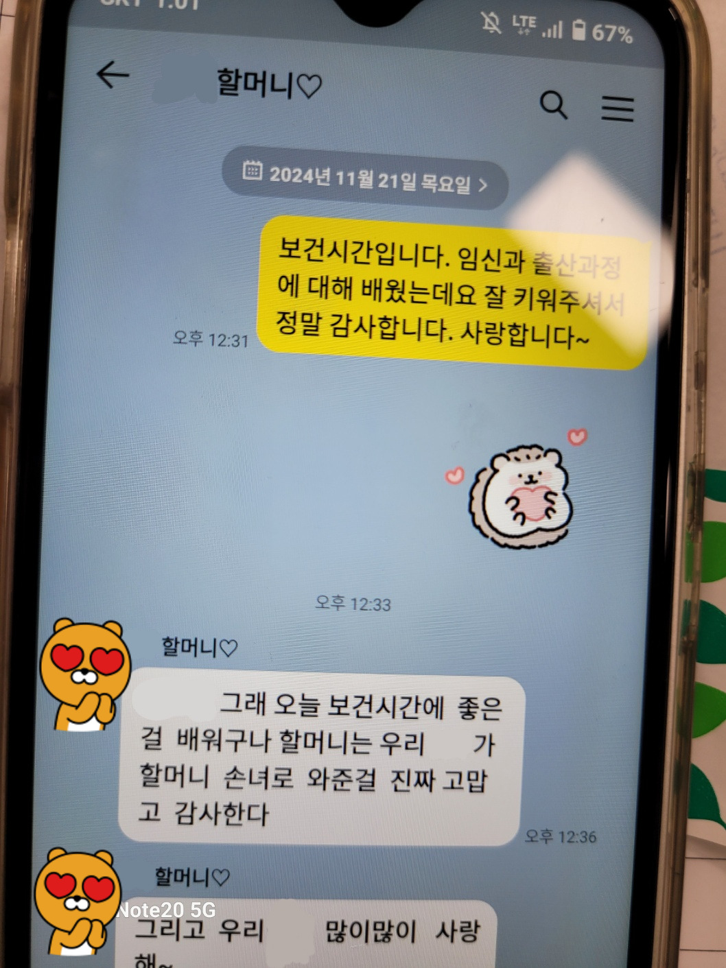 보건수업시간에 뭘 배웠는데??? 엄마, 아빠, 할머니 모두의 노력으로 학생들이 잘 자라고 있습니다. 계속 응원해주세요.